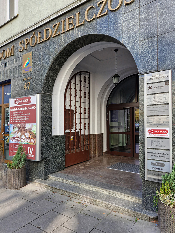 Poradnia mieści się na drugim piętrze zabytkowej kamienicy (wejście od strony Żabki)